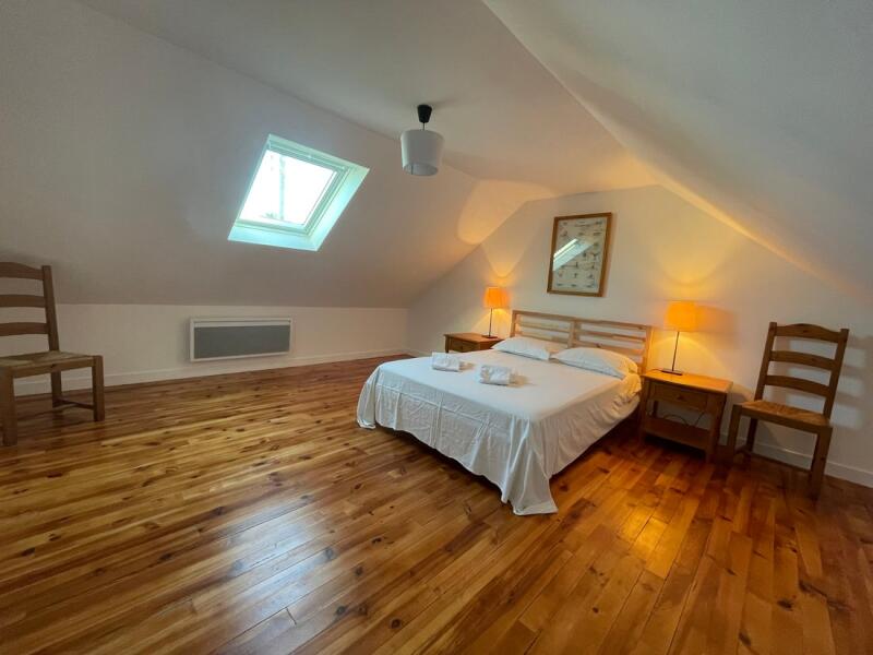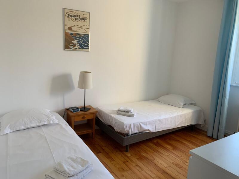 : 2 chambres : 1 avec un lit (160*200) et 1 avec 2 lits simples (90*190),