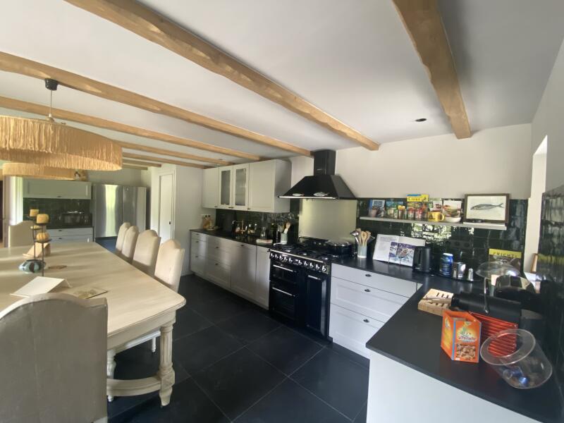 - il y a une grande cuisine avec une table permettant de manger tous ensemble. La cuisine est totalement équipée.