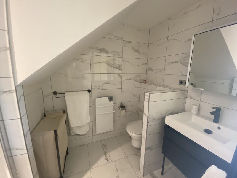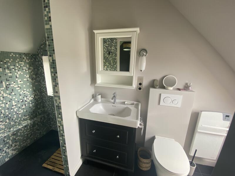 - une chambre double avec salle de bain attenante, douche et WC
