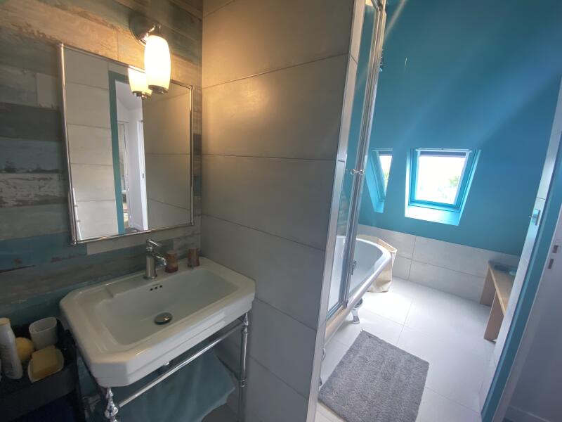 Toutes deux attenantes à la salle de bain, baignoire et WC séparé