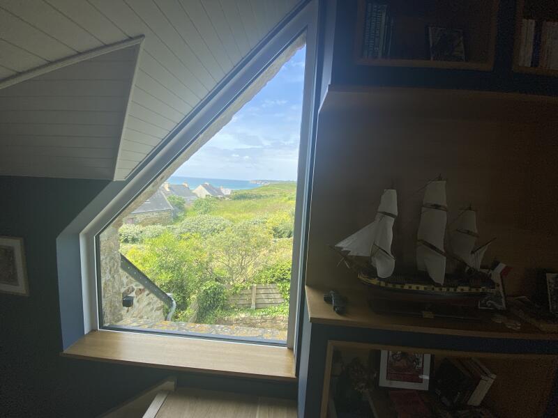 - une mezzanine vue sur la mer, les tas de pois de Camaret